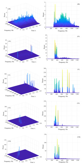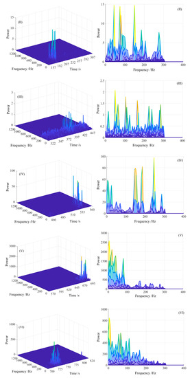 In order to analyze the characteristics of MS signals, the signals without obvious change during the six groups of experiments ere firstly intercepted, and the duration was taken as 1 s. After EMD decomposition of the intercepted signals, the energy percentages of each IMF component are calculated, as shown in Table 7. White noise signals with a sampling frequency of 2500 Hz and a length of 1 s were taken and EMD decomposition was also performed. After decomposition, the energy percentages of each IMF are also shown in Table 7.