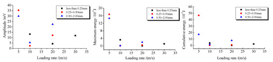 As shown in Table 4, the event count rate overally increased as the increase of the loading force. Event count rate was generally small in the early and middle loading stage, but increased greatly in the process of fracture and after fracture. MS signal intensity of each experiment was evaluated according to the event count rate and amplitude. The evaluation standard is shown in Table 5, in which O represents that the signal was not obvious, ⬤ represents that the signal was weaker, ⬤ represents that the signal was stronger and ⬤ represents that the signal was the strongest.