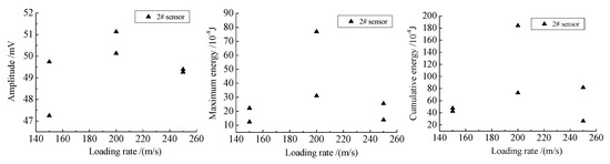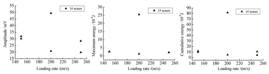The loading for uniaxial compression tests on 1#-6# coal specimens were controlled by the axial load rate. In order to eliminate the influence of contingency factors, two MS sensors were arranged on coal surface in the experiment process (as shown in Figure 3). The experimental loading scheme is shown in Table 1.