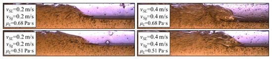- Kim, T.W.; Aydin, T.B.; Pereyra, E.; Sarica, C. Detailed flow filed measurements and analysis in highly viscous slug flow in horizontal pipes. Int. J. Multiph. Flow 2018, 106, 75–94. [Google Scholar] [CrossRef]