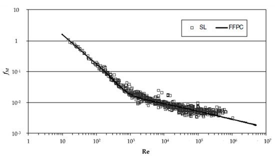 - Garcia, F.; Garcia, R.; Padrino, J.C.; Mata, C.; Trallero, J.L.; Joseph, D.D. Power law and composite power law friction factor correlations for laminar and turbulent gas-liquid flow in horizontal pipelines. Int. J. Multiph. Flow 2003, 29, 1605–1624. [Google Scholar] [CrossRef]