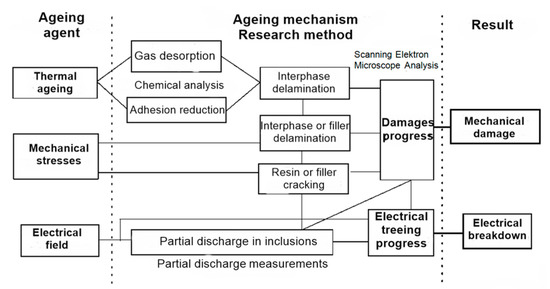 The physical nature of the electric aging is hardly recognized. However, it is generally believed that the process is dominated by partial discharges and injections of electrons from electrodes. The presence of the electric field has no direct impact on the kinetics of the aging process. The value of the coefficient “n” is usually determined based on long-term experimental processes.