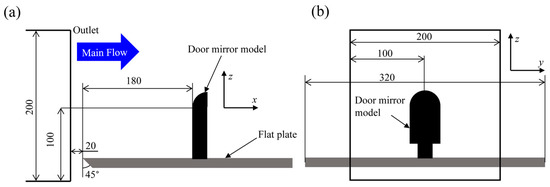 Location of the door mirror model at (a) x–z cross section and (b) y–z cross section.
