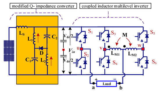 Proposed modified Q-impedance converter fed coupled inductor multilevel inverter (MLI).