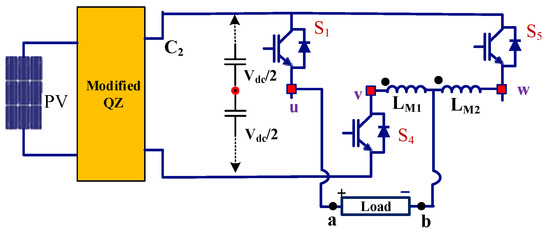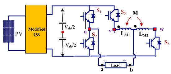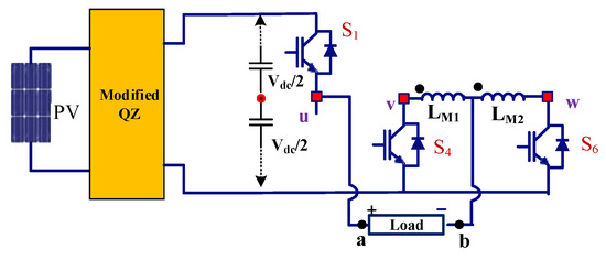In the current era, the interests of multilevel inverters (MLIs) have increased than the conventional VSIs, due to their merits [22]. Particularly the development of power semiconductor technology makes it easy to tradeoff the selection of power devices. New MLIs have been recommended in a hybrid approach by involving MOSFETs, IGCTs or GTOs and IGBTs [23,24,25,26,27]. Recently, the interleaved converter topology using coupled-inductors is proposed and extensively applied in low-power claims. These topologies are mostly used to increase the output current with lesser current ripple.