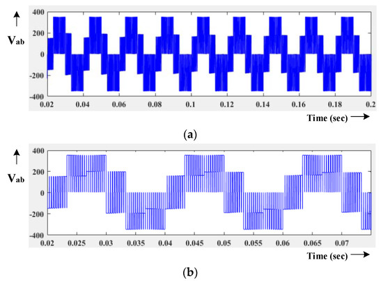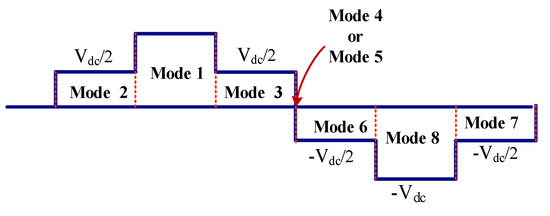 Table 1 shows the consolidation of the eight modes of operations of the inverter. Of these eight modes, six modes are producing the voltage in different forms between +Vdc to −Vdc. The Mode-4 and Mode-5 are producing the zero voltages, and hence, any one of the modes can be used for zero voltage. Figure 18 illustrates the all mode operation output voltage structure for proposed MLI.