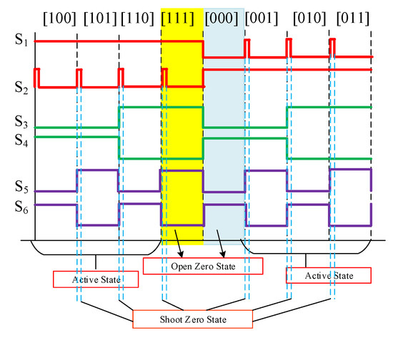 Here, the Vref is related to the sampling period Ts. The ST duty ratio for inverter must be predefined for every switching cycle by adding the ST time within the TS. Figure 19a shows the dwell time control of inverter, and it is related to TS (= 1/fS), and Vin.