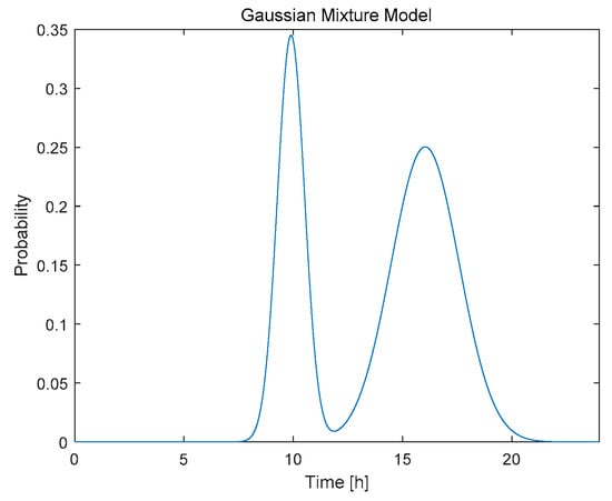 As shown in Table 1, the number of samples are insufficient, so we use Bayesian estimation to infer the probabilistic model because it is reliable even with small samples [29]. The estimated model is a Gaussian Mixture Model (GMM), and the appearance of the probability distribution function calculated from Equation (1) is as shown in Figure 1.