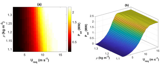 The value of can change with height due to wind shear. Therefore, we can quantify at several heights and integrate it vertically over the rotor swept area, which results in a rotor equivalent wind speed similar to the approach proposed in [5,8]:
