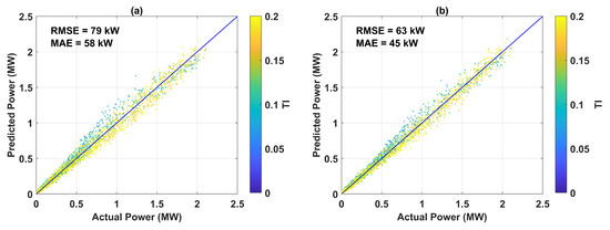 where is the actual power and is the predicted power. Smaller values of and represent higher accuracy in the prediction model while greater values of and indicate less accurate power prediction.