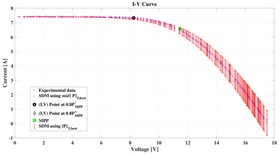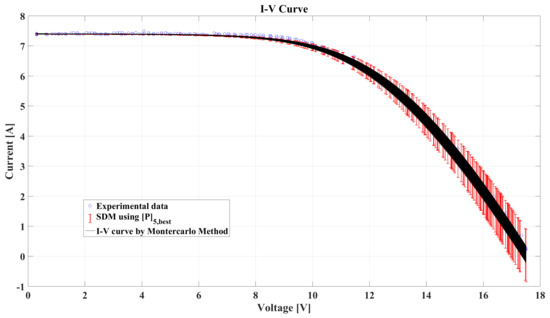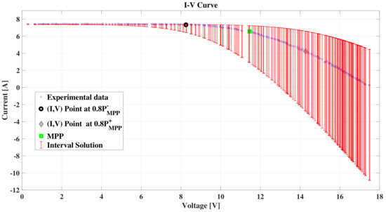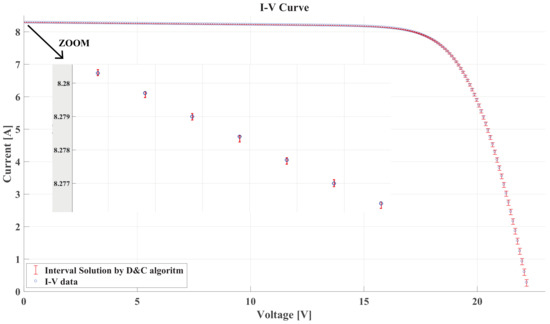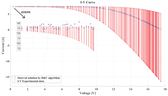 In Figure 10, the I-V curve generated by SDM using the best sub-interval, which is shown in the third column of Table 7, is depicted: the contraction of the initial interval set with respect to the Figure 8 is evident.