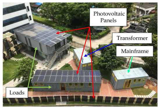 In this section, the experiment results with VMD-HT, EMD and WIFFT algorithms are presented. The DC power data is provided by Gree Photovoltaic Cabin at Gree company. Figure 18 and Figure 19 show the Gree Photovoltaic Cabin and its corresponding system configuration. As seen, the system mainly consists of four parts: the AC system, the photovoltaic panels, the PV air conditioning framework and DC loads. The PV air conditioning framework can absorb power from the photovoltaic panels through the DC/DC converter or absorb/support power from AC system through the AC/DC converter and the transformer, and it will support the main DC loads and AC loads through the DC/DC and DC/AC converter. In the DC distributed system, there are three DC buses. The experiment data is sampled from DC bus 1, where the sampling frequency is 10 kHz and the rated voltage is 620 V.