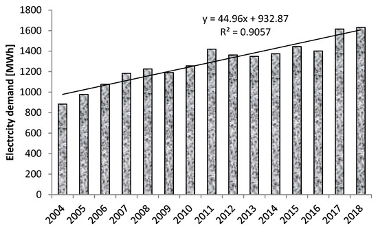 On the basis the statistics of annual electricity generation and maximum demand for Northern Cyprus, the average annual increase has been about 5.63% during the past 15 years, i.e., the total electricity demand between 2004 and 2018 increased from 883.869 MWh to 1631.041 MWh, as shown in Figure 2. This may be due to the fast growth of the population, as well as increased levels of construction and so on in Northern Cyprus. Several studies have examined the effect of economic variables on electricity consumption in Northern Cyprus. For example, Egelioglu et al. [12] investigated the impact of economic variables including per capita income, population, and the number of tourists on the annual electricity consumption in Northern Cyprus during 1988–1997. The results showed that these variables were significantly associated with electricity consumption. Furthermore, the relationship between electricity consumption and economic growth mainly in the education sector has also attracted attention and been investigated. Katircioğlu [13] estimated higher education-induced energy consumption in Northern Cyprus. The results demonstrated that higher education development in Northern Cyprus exerts a positive and significant growth impact not only on electricity consumption, but also on overall oil consumption.