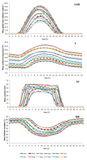 In line with the abovementioned studies, meteorological parameters including mean hourly global solar radiation, sunshine, relative humidity, and temperature were analyzed statistically. The data were taken as 1h average values for the three years between January 2014 and December 2016.