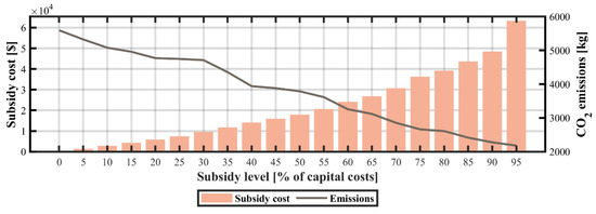 Simulation results of capital subsidies across all DG technologies. Impact on subsidy costs and CO2 emission levels.