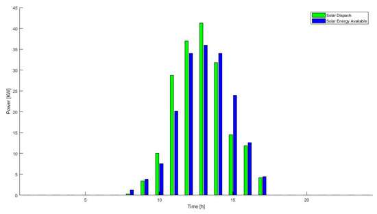 Availability and dispatch of the solar energy system of the MG when the storage system is new.