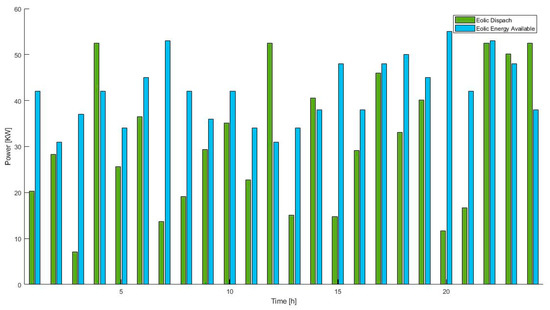 Availability and dispatch of the wind energy system of the MG when the storage system is at 60% of its useful life.
