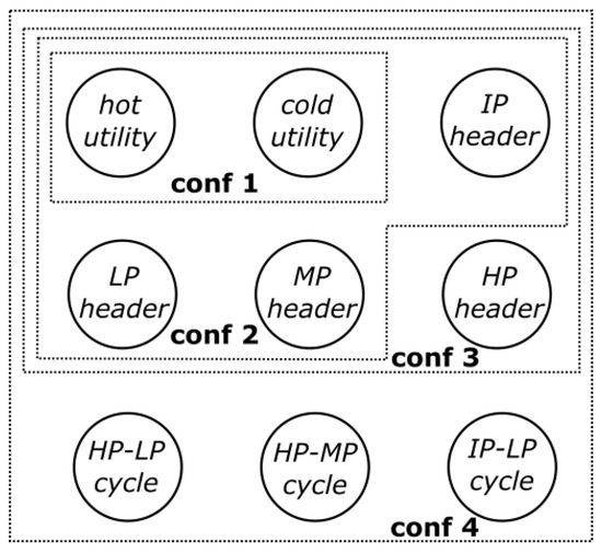 - Maréchal, F.; Kalitventzeff, B. Restricted matches and minimum cost of energy requirements: tools and methodology for producing practical solutions. In Proceedings of the PRES—The 2nd Conference on Process Integration and Optimisation for Energy Saving and Pollution Reduction, Budapest, Hungary, 31 May–2 June 1999; pp. 433–438. [Google Scholar]
