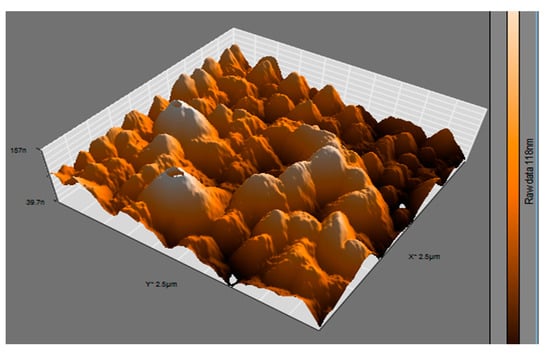 The surface morphology ZnPc thin film is examined by atomic force microscope (AFM). The AFM was operated in non-contact mode in order to avoid damage to the film surface. Figure 3 presents 3-D AFM micrograph of ZnPc thin film. The average surface roughness (Ra) of the film is 15.48 nm which represents slightly rough and non-uniform surface. The surface of ZnPc thin film indicates formation of localized islands and mosaics which result in traps for charge carriers and more localized states.
