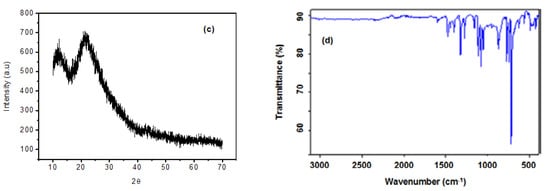 (a) UV-vis spectrum, (b) Tauc’s plot for energy bandgap calculation, (c) XRD pattern and (d) FTIR spectrum of ZnPc thin film evaporated at room temperature.