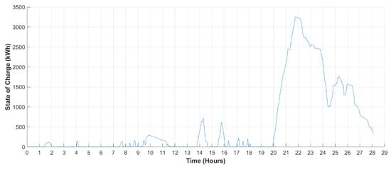 The maximum values for the power injection (), extraction , and energy storage must be defined according to the type of ESS under evaluation. A direct way to achieve the optimal size of ESS, whatever kind of technology considered, can be by simulating different system sizes.