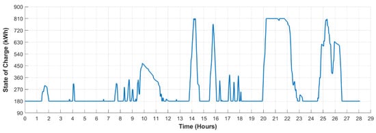 The most adequate storage device can be determined by the system main characteristics, such as specific energy (Wh/kg), specific power (W/kg), and charge/discharge cycle duration, among others [29]. The main alternatives to be used in the energy recovery from regenerative braking are batteries [30,31], supercapacitors [32,33], and flywheels [34,35]. Among them, the batteries are the most adequate for freight trains [36].