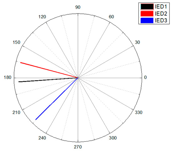 As the potential transformer supplies the same voltage signal to each local IED, their voltage angles should be identical. However, time synchronization errors lead to voltage angle differences, which are used to compensate for time synchronization errors. Thus, a reference IED is defined as the local IED that has the voltage angle with the greatest lag, which is selected by:
