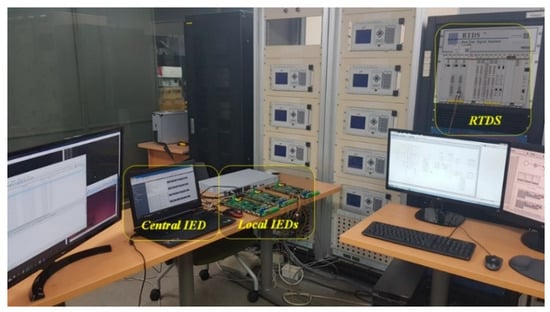 Figure 12 shows the Korean 154 kV digital substation modeled in the RTDS, including a schematic of data exchange. The RTDS used the same system configuration and modeling parameters as the PSCAD/EMTDC. The testing in this paper was proceeded according to the RTDS-based procedure for testing the IEDs to be used in KEPCO 154 kV substations [39].
