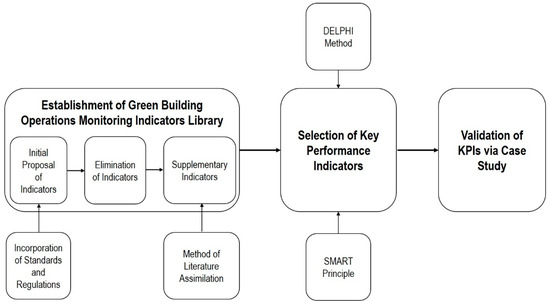 Firstly, an indicators library for operations monitoring of green building was established based on relevant standards and literature review in this field. Secondly, “SMART” principle and Delphi method were adopted to select the key performance indicators for green building operations monitoring. Subsequently, two projects in China were selected for case study of key performance indicators for green building operations monitoring to validate the feasibility and advancement. See Figure 1 for an illustration of the research process undertaken.