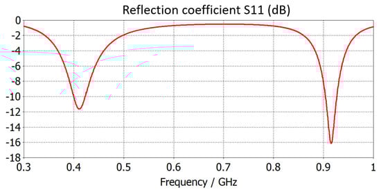 In order to eliminate the mismatch loss impact from the output results, the reflection coefficients are calculated. As shown in Figure 3, the antenna always has a resonant frequency at 915 MHz and the corresponding S11 is around −16 dB which indicates that it is matched with the input impedance.