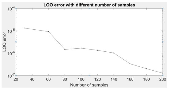 As seen in Figure 4, the LOO error decreases effectively as more samples are included into the database. When 200 sample point are taken into account, the LOO error is 1.2 × 10−7. This validates the reliability of the established PCE model and ensure the correctness of the following results.