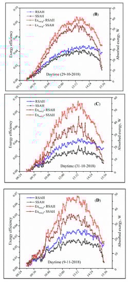 - Alta, D.; Bilgili, E.; Ertekin, C.; Yaldiz, O. Experimental investigation of three different solar air heaters: Energy and exergy analyses. Appl. Energy 2010, 87, 2953–2973. [Google Scholar] [CrossRef]