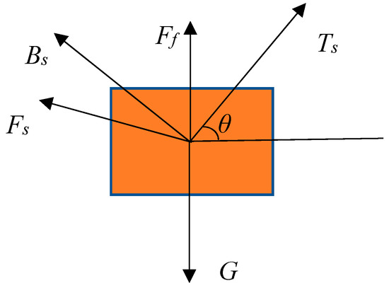 When passing through the splash zone, the ship, cable, and the subsea tree form a multi-body motion system that interact with each other. After the subsea tree enters the water, it has six degrees of freedom in the water, which is simplified to a two-dimensional plane motion. The force diagram of the subsea tree is shown in Figure 3.