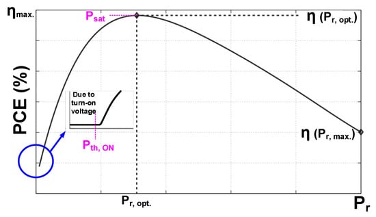 Non-linear PCE curve characteristics of the single-stage rectenna.
