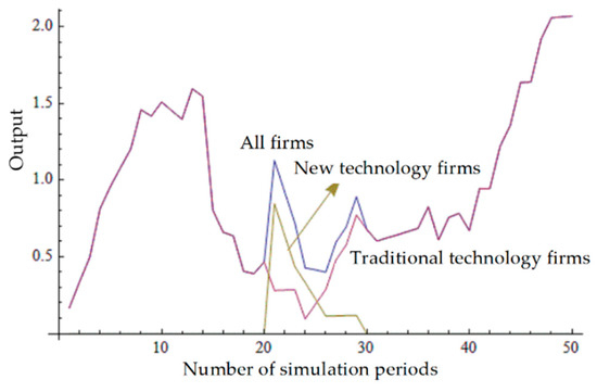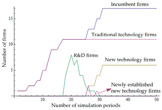 According to Equations (15) and (16), the entry or exit of firms in an industry is influenced not only by the industrial system itself but also by the evolution of the market system and technology system.
