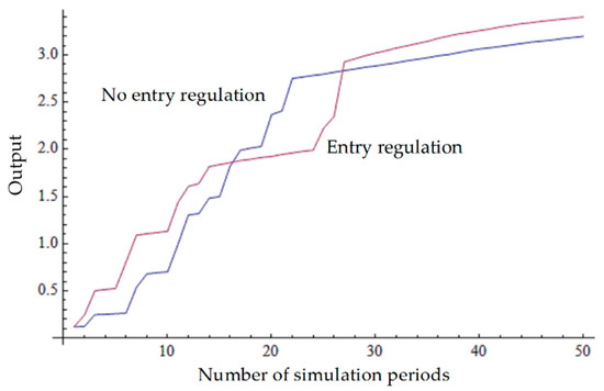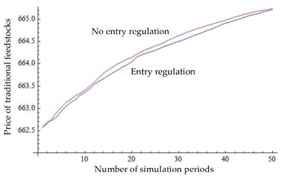 In Equation (2), if is set; then, , which represents when the incumbent firm loses money, and no new firms enter this industry. That is to say, indicates that the firm is completely rational. If is set, even if the incumbent firms have losses, there will still be latecomers. In other words, this model can satisfy the theoretical hypothesis of rationality or incomplete rationality by making different assumptions.