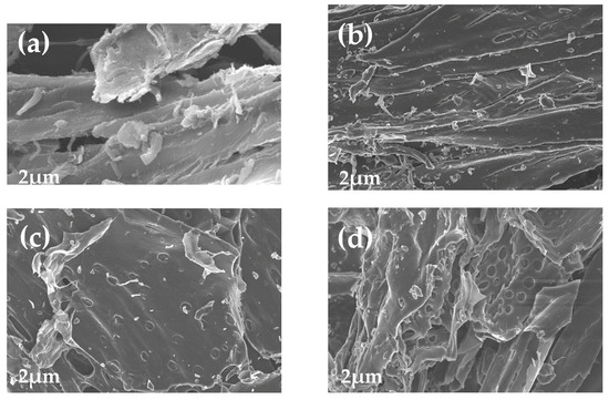 3.1.3. Scanning Electron Microscope Analysis of Raw Material and Obtained Chars