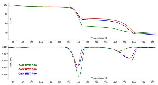 3.2.1. Thermogravimetric Analysis of Sorbent (CaO)