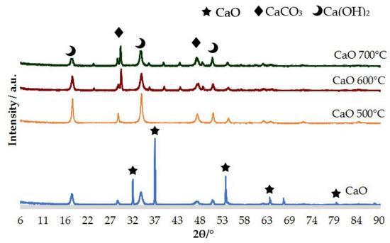 3.2.3. X-ray Diffraction Analysis of Sorbent (CaO)