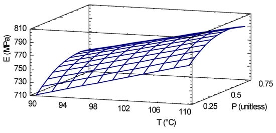 In addition, Equation (6) expresses the regression model for the modulus of elasticity of the briquettes as a function of the coded experimental factors.