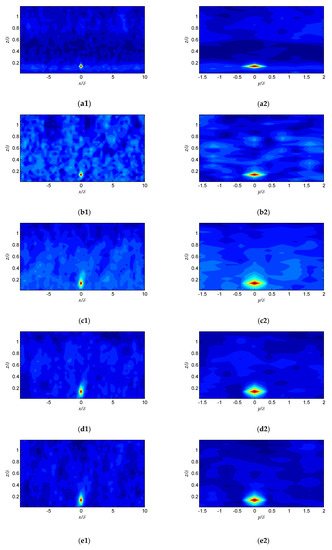 In Figure 3, going from the strongly stable condition to the neutral stable condition to the strongly unstable condition, some interesting phenomena can be seen. First, the form and shape of the dominant turbulent eddy structure changed from small-scale motions to large-scale and very-large-scale motions and then to regional motions as the turbulent boundary layer became unstable. Second, the dominant size of the turbulent eddy structure varied as the stability changed; a quantitative analysis of this is presented in Section 4.2 based on the three-dimensional spatial correlation coefficient field.