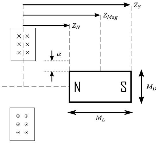 where is the remnant field of the magnet, is the magnetic field produced by the magnet and is the permeability of free space. The magnetic field of the coil can be determined by taking the integral of the current loops of the coil along the axial length of the coil [17,18]. This results in Equation (11)