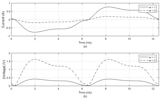 (a) Current and (b) voltage requirements of the actuator when the ’winding ratio’ is changed.