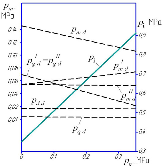 where pi th and pid are the average indicated pressure when throttling and switching off the cylinders; pm th and pmd are the average pressure of mechanical losses using the combined method of power regulation.