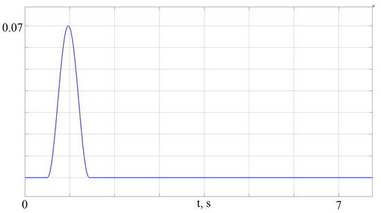 where is half the height of the bump, is the bump width, is the speed of the vehicle, and . The irregularity profile as a function of time is presented in Figure 16 (the parameters are as follow: = 0.035 m, = 0.8 m, = 0.856 m/s).