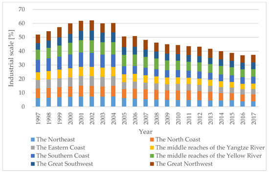 Industry scale in various regions of China from 1997 to 2017.