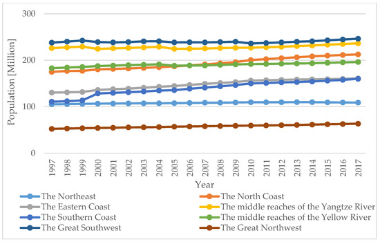 Regional population sizes of China from 1997 to 2017.