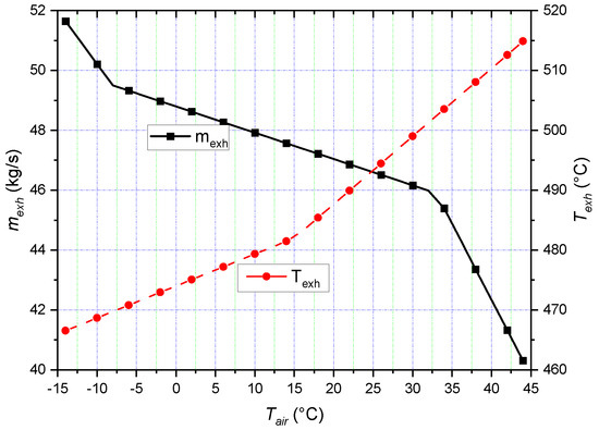 C. As a consequence, three thermodynamic conditions are changing at the same time: the condenser refrigerant inlet air temperature and mass flow rate and temperature of the exhaust gas from the gas turbine. Increasing ambient air temperature, gas turbine’s output power and electrical efficiency decrease, together with a reduction of the exhaust hot gas mass flow rate and an increment in their temperature (