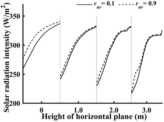 4.2.1. Effect of the Interior Multi-Reflection on the Light Environment of the Solar Greenhouse