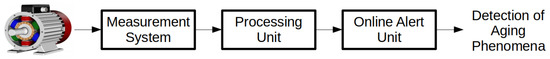 Future directions mostly involve the employment of the online unsupervised monitoring system to assess the aging of more complex apparatuses. Moreover the IoT-based maintenance apparatus will be developed. As discussed in Section 6.2, the proposed strategy may combined with the strategy presented in [26,27] to further improve the effectiveness of the aging assessment. Thus, local information collected via the unsupervised system can be exploited at a central level to properly set the parameters in (6). Nonetheless, the general scheme of Figure 5 could also exploit a different inference model.